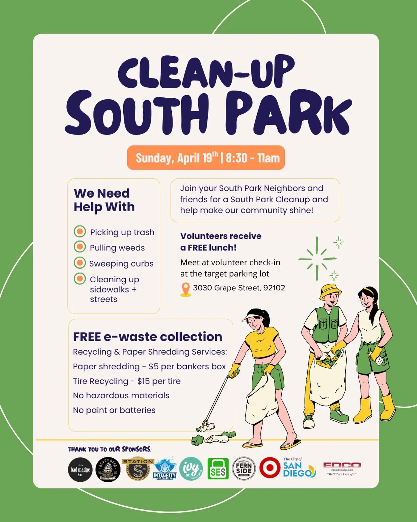Click HERE to find out more and sign up to join us for a fun day of giving back to our community! We'll meet in the Target parking lot for registration at 8:30 and break into groups to get started by 9am. Clean Up followed by FREE LUNCH for all volunteers!